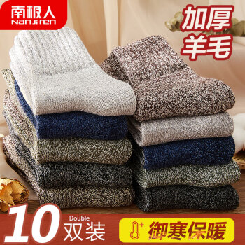 南极人男性鞋下男暖和袜男快适滑雪加厚乌尔的鞋下长筒男袜并线袜士时尚秋和冬袜混色10双装